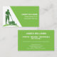 Cartão de visita simples, verde e branco, com uma pessoa de silhueta usando cortador de relva. Perfeito para o seu negócio de assistência à grama ou manutenção de jardins ou para o seu negócio de paisagismo. Front tem nome, nome comercial e tipo de serviço, enquanto o back inclui nome, slogan, número de telefone, áreas servidas (ou mensagem curta com serviços), email, site e endereço. Totalmente editável para atender às suas necessidades. Um cartão simples, mas impactante.
