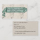 Um belo e elegante design, com uma faixa verde de aparência medieval sobre um fundo de florescimento bege, castanho e cinza. Não se esqueça de que você pode personalizar os dois lados deste cartão com qualquer informação que quiser, do nome do portador do cartão ao título, nome da empresa, endereço etc. Você pode até mover o texto e mudar a fonte. Se você não precisar de todas as linhas de endereço, poderá excluir quaisquer linhas que atendam aos seus requisitos e até mesmo excluir o título na parte frontal da placa para que o nome do portador da placa fique na faixa sozinho, se preferir.