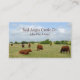 Um cartão de visita mostrando um campo rural com gado Angus vermelho pastoreando na grama. Boa design para qualquer pessoa na agricultura e na indústria agrícola.