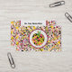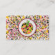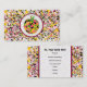 Um cartão de visita para professores com um fundo de pinturas rosa, verde, preto e amarelo em ambos os lados. Uma aparição rosa. A ilustração da frente mostra uma maçã de plástico de tinta correspondente. Personalize as costas com suas informações.