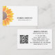 Esta cartão de visita única é decorada com um girassol de cor d'água em tons de amarelo. Facilmente personalizável com seus detalhes e código QR. Para editar ainda mais, use a Ferramenta Design para alterar a fonte, o tamanho da fonte ou a cor. Porque nós criamos a nossa trabalho de arte, você não encontrará esta imagem exata de outros designers. Original Watercolor © Michele Davies.
