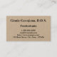 Essa design tradicional, personalizável e simples poderia ser usada por um profissional como protodontista, higienista dentário, dentista ou cirurgião dentário. O nome, a profissão e os contatos podem ser personalizados.