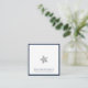 Faça uma impressão duradoura com nossos cartões de visitas quadrados profissionais com logotipo personalizado e marinho de borda azul. Esses cartões de visitas elegantes apresentam um emblema impressionante de estrelas geométricas radiantes, prateadas, que pode ser personalizado com sua marca, apresentado em fundo branco limpo com tipografia elegante clássica, enquadrado em azul marinho escuro. Ideal para qualquer profissional de negócios, este cartão exime profissionalismo e confiança. Personalize-o com seu nome, título e informações de contato no verso para criar uma impressão distinta e duradoura.