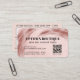 Cartão de visita personalizado com design metálica cor-de-rosa com tipografia sans-serif e sistema clássico de recompensa no verso para os clientes receberem algo, ou seja, desconto, item livre, etc. Clique em 'Personalizar' para adicionar detalhes de sua empresa, incluindo nome, tipo de serviço, número de telefone, site, endereço, código qr com texto, horas de armazenamento, informações adicionais e sistema de recompensa no verso.