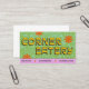 Modelo de cartão de negócios retrorreflector gratuito. Promova seu pequeno negócio de restaurantes em estilo com este design alegre, divertido e feliz em esmeralda, lilás, ouro, verde-claro, laranja e preto.