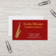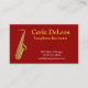 Este cartão de visita é perfeito para qualquer um envolvido com o saxaphone. Caracteriza um gráfico bonito de um saxaphone no lado de mão esquerda. O fundo é uma cor vermelho escuro. O righthand é reservado para sua informação do negócio.