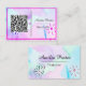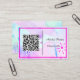 Trata-se de um cartão de visita de tamanho britânico/europeu e está disponível em mais tamanhos. Altere o código QR, o nome e o título do cargo para sua especificação. Projetado com uma mente artística, ela tem um fundo de aquarela rosa, roxo, com um código QR, nome e cargo. A parte traseira do cartão tem o nome e o título.
