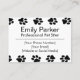 Mantenha-se como um babá de estimação confiável com este cartão de visita personalizável com um fundo branco limpo e impressões em branco. Perfeito para ambulantes de cães, babás de gatos e provedores profissionais de cuidados para animais. Adicione seu nome, detalhes de contato e mídia social para criar um cartão exclusivo que deixe uma impressão duradoura para os proprietários de animais de estimação. Ideal para redes, reuniões de clientes e publicidade local.