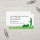 Simples modelo de cartão de negócios de gramado criado com uma silhueta pró-relva de grama e grama verde, juntamente com um layout simples para um serviço local de vizinhança. Personalize o design on-line para qualquer serviço de assistência ao gramado, serviço de paisagens ou manutenção de locais.