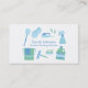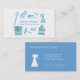 Um cartão de visita moderno e profissional com ilustrações para rodar o nome da empresa. Incluem material de limpeza, tais como luvas, detergentes, garrafas para pulverização, escovas de sanita, escovas, folhas e tecidos, pegadas de ferro e vestuário. Paleta de cores azul e verde que comunica uma sensação de frescura e limpeza. Perfeito para os serviços de limpeza da casa! Personalize facilmente os detalhes de sua empresa nos modelos de texto fornecidos.