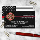 Contato/cartões de visitas de bombeiros profissionais, de design clássico e personalizado, com a bandeira preta e branca de bombeiros no verso, e crachá comum maltês e linha vermelha fina na frente.