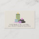 Um cartão de visita de spa com ilustração na frente de velas, pedras spa e orquídeas. Personalize o texto na frente e atrás com suas informações.