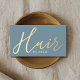 Modelo de cartão de negócios personalizável elegante com fundo azul e texto de cabelos de ouro. Perfeito para salão de cabelo, cabeleireiro.