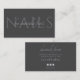 Um cartão de visita de salão de unhas moderno com sua assinatura em um estilo de script de tendências, sobreposto em um tipo de serifa clássico, com ícones de mídia social no verso. Estilo moderno minimalista.