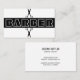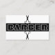 Promova seu compro barbeiro com este moderno roteiro preto-e-branco de tipografia com cartão de visita de tesoura. ++++++++ Fácil de personalizar no verso com seu nome, título e detalhes de contato. ++++++ Adequado para salões masculinos, barbeiros independentes, estilistas de barbeiros.