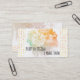 Pavimentos em forma de aquarelas, com tiras coloridas e bolas de fio neste cartão de visita, para fios de crochê, fios para uso doméstico, ou para tricô ou cartão de artigos de malha.