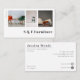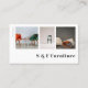 Este cartão de visita moderno personalizado para loja de móveis, carpinteiro, lojas antigas ou estofadores contém 3 modelos para adicionar suas próprias fotos favoritas. Todos os detalhes, como nome e mídia social ou informações de contato, podem ser personalizados individualmente. Se você não precisa de uma informação, apenas exclua a linha.