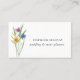 Este cartão de visita de casamento e planejador de eventos é decorado com flores silvestres de aquarela. Facilmente personalizável. Use a Ferramenta Design para alterar o tamanho, o estilo ou a cor do texto. À medida que criamos a nossa trabalho de arte, não encontraremos esta imagem exata de outros designers. Original Watercolor © Michele Davies.