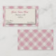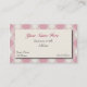 Modelo de cartão de negócios adorável e na moda, feito em uma xadrez retrô. Uma área de texto de creme sólido sobre a xadrez rosa e creme tem texto preto e rosa escuro. Personalize todo o texto para atender às suas necessidades.
