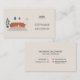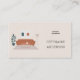 Um cartão de visita simples sobre um fundo bege que ilustra uma sala de estar com um sofá de pelúcia, uma mesa de café, uma planta e uma lâmpada. Este cartão de chamada será perfeito para um designer de interiores ou um gerente doméstico.