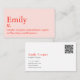Design cartão de visita personalizado moderno e profissional com um estilo design de definição de dicionário. Com campos de modelo para nome, nome/cargo da empresa, informações de contato e código QR (deletar se preferir). Texto vermelho moderno minimalista em fundo rosa. Alterar as cores de fundo, mover e redimensionar elementos com a ferramenta de personalização. ©Marisu Valencia