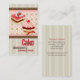 O bolo e o copo deliciosos endurecem as sobremesas que sentam-se na metade superior das bolinhas do rosa e do taupe do primeiro plano do cartão com beiras decorativas, fundo listrado e parte traseira de cartão. Cartão de visita perfeito para algum tipo loja, padaria ou planejador da sobremesa de eventos. Customizável, apenas pessoais completos a aparência e fornecem o texto seus imagem e/ou texto do design.