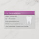 Estes cartões de visitas inteiramente customizáveis do dentista foram feitos com uma clínica dental do estúdio ou da ortodontia da parte alta na mente! A parte dianteira caracteriza um fundo roxo com as listras diagonais subtis. Na parte superior é um dente que você pode se usar como seu logotipo ou transferir arquivos pela rede seus próprios. Personalize o nome dental do estúdio. A parte traseira do cartão caracteriza a sala para um nome do dentista, do orthodontist ou do empregado. Abaixo disso você pode editar o texto para adicionar toda a informação que você goste. Há uma imagem do dente na parte traseira que você pode deixar, para suprimir, ou para mudar.