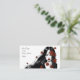 Um cartão de visita de na moda com ilustração artística de uma mulher com cabelos fluidos adornada com folhas de outono.