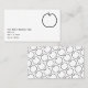 Design preto e branco simples, na frente está um contorno preto de uma maçã e texto para personalizar. Na parte de trás está um padrão de maçã.