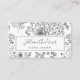 Este elegante cartão de visita profissional personalizado apresenta um design floral rosa desenhado a preto e branco com uma camada branca, bordada a preto. Personalize seu nome, profissão e contatos estão em um roteiro moderno de cinza escura. Desenhada por Susan Coffey.
