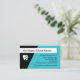 Um cartão de visita de escritório de dentistas com um poderoso design moderno, incluindo um símbolo de dente e um design geométrico com um esquema dentário organizado para uma clínica de prática de grupo ou implante dentário.
