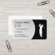 Cartão de visita para uma empresa ou serviço da indústria de golfe projetado com uma imagem de um golfista e uma bola de golfe fechada sobre um fundo preto, com a capacidade de personalizar a cor e o texto traseiros de acordo com as suas necessidades.