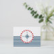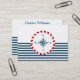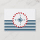 Design náutico com decoração em forma de bússola, em fundo listrado a azul e a branco