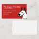 Use este simples modelo de cartão de negócios de sitter para representar seus serviços. Projetado em uma cor que se destaca e inclui um bonito gráfico de cão no fundo com um layout simples que você pode alterar online. Criado para um animal de estimação servindo, andando de cão ou veterinário. Apresentado em papel de cartão de visita de canto arredondado.