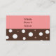 Um cartão de visita moderno em chocolate e bolinhas brancas com fundo rosa. Cartão perfeito para uma empresa de panificação, decoração de bolos, doces, sobremesas, restauração, restaurantes, etc.