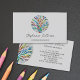 Este moderno e único cartão de visita de designer de interiores é decorado com um design de mosaico colorido e uma tipografia de na moda em fundo de cinza. Facilmente personalizável. Use a opção Editar para alterar o tamanho, o estilo ou a cor do texto. Mosaico original © Michele Davies.