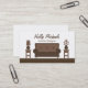 Um cartão de visita para o decorador interior/desenhista que caracteriza uma ilustração de uma sala de visitas com um esquema de cores marrom. Um sofá senta-se entre duas mesas de extremidade com um vaso das flores e de uma lâmpada. Personalize o texto na parte dianteira e na parte traseira.