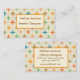Esta é uma cartão de visita personalizada personalizada com um elegante meio século com um padrão de explosão atômica colorida moderno em diferentes cores vibrantes como azul, verde-menta, laranja e coral