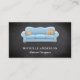 Cartão de visita elegante com um belo sofá azul em fundo de quadro. Adicione seu nome e detalhes de contato para fazer uma primeira impressão duradoura.
