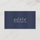 Modelo de cartão de negócios mínimo elegante totalmente personalizável com fundo listrado azul. Perfeito para profissionais de design de interiores, boutique ou moda e muito mais.