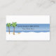 Cartão de visita com uma imagem de praia tropical com palmeiras. Perfeito para agências viagem.