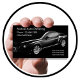 Cartão de visita de detalhes automotivos em um design legal apresentado em estoque de cartão de formato grande mais alto que o tamanho padrão em preto clássico com carro em segundo plano e layout simples que você pode personalizar para adequar seus serviços de detalhamento móvel e o design também funciona bem para qualquer serviço da indústria automobilística.