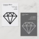 Um modelo de cartão de negócios com uma joia atraente ou um motif de diamante na frente. Nome da empresa, tipo de negócio e endereço na frente com nome, cargo, telefone, web e endereços de e-mail no verso, com um layout semelhante em um fundo de cinza com um motivo de diamante em uma cinza mais leve. Este cartão também pode ser mais personalizado.