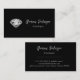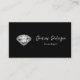 Cartão De Visita Diamante sobre fundo preto com script prateado