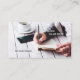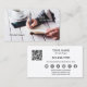 Um design retro com uma mulher escrevendo em um notebook com um café e seu telefone. No verso há um modelo de código QR facilmente personalizável, assim como vários ícones de mídia social. Você pode excluir aqueles de que não precisa. Excelente para um blogueiro ou escritor.