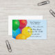 Um cartão de visita perfeito para planejadores do partido e de evento com o buquê colorido do balão no fundo azul.