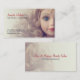O modelo de cartão de negócios profissional para o salão de beleza, os serviços do cabelo e da composição, os cosmetologists, cirurgia plástica ou a outra beleza relacionou o negócio que caracteriza uma boneca antiga loura bonito com olhos azuis.