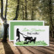 O cartão de visita de galinha-do-cão foi feito em branco, com gráficos em aquarela de grama verde, e gráficos em silhueta preta de um andador de cães com três cachorros. Todo texto é totalmente personalizável. Personalize este cartão divertido para a sua empresa.