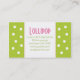 Cartão de visita chique das bolinhas do verde limão do pirulito por BoutiqueMama.com. Design web de harmonização disponível! Veja-o viver em nosso estúdio BoutiqueMama.com do design web que combina o design web disponível! Veja-o viver em nosso estúdio BoutiqueMama.com do design web!