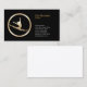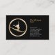 Este simples cartão de visita de coreógrafo apresenta um fundo preto a jato com um ícone de salto dançarino dourado no lado esquerdo da placa, enquanto seu nome, título e detalhes de contato aparecem à direita. Projetado para entretenimento, entretenimento, festa, diversão, crianças, crianças, reuniões, festas, temas de dança.